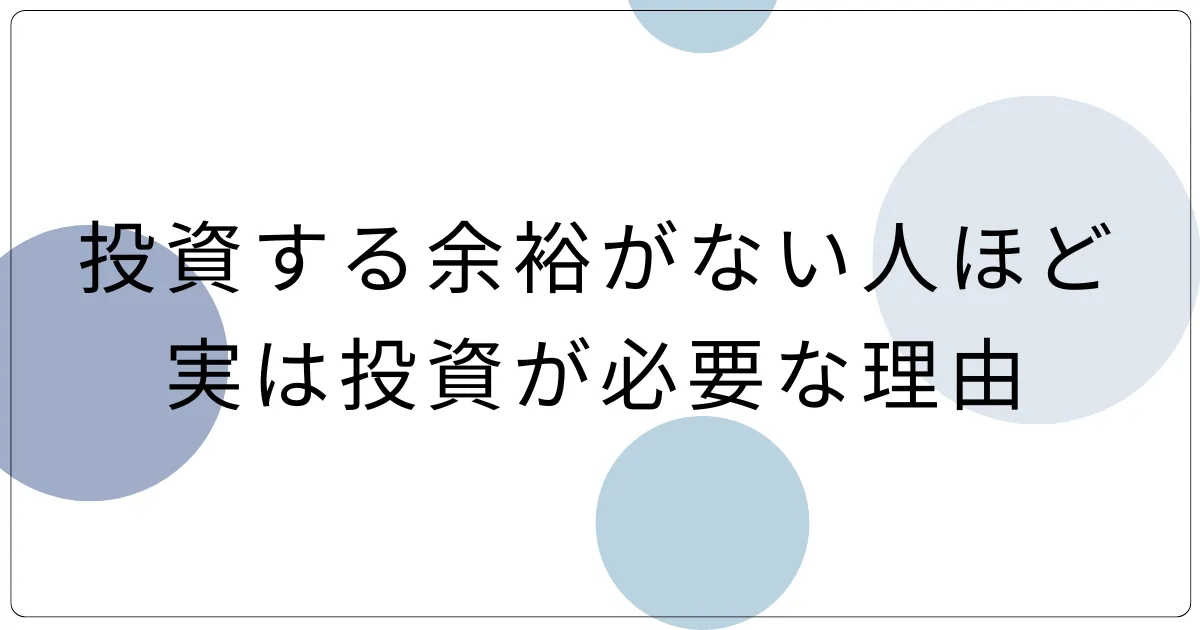 今回は、投資をする余裕がないと考えている人ほど「投資」について向き合ってみてほしいというお話です。